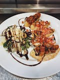 Mixed greens, cannellini beans, red onions, cucumbers, and citrus vinaigrette topped with grilled marinated salmon and bruschetta mix.